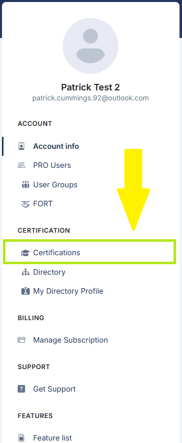 Once you log in, navigate to the Certification page by clicking 'Certifications' from the left-hand menu.